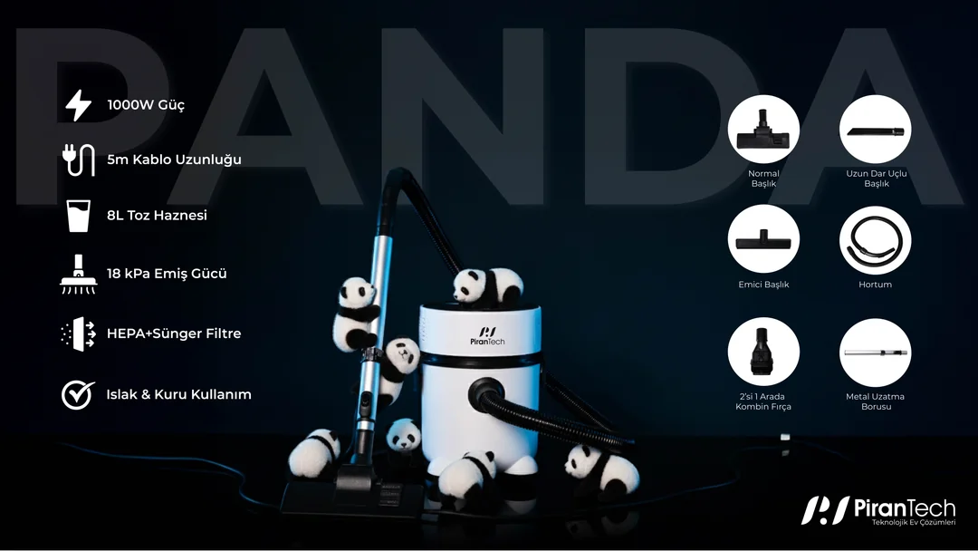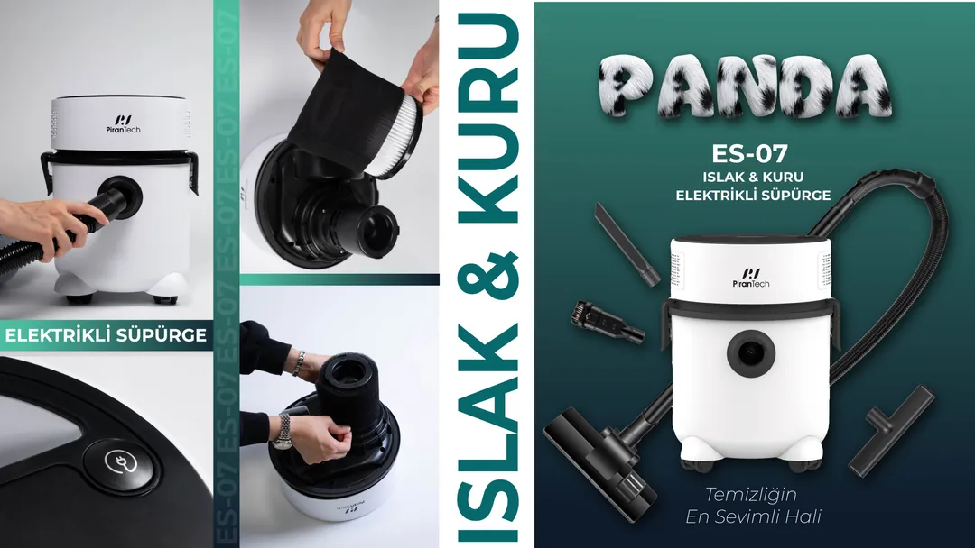 ES-07 Panda Islak & Kuru Elektrikli Süpürge | 1000W Güçlü Motor | HEPA Filtreli | Toz Torbasız